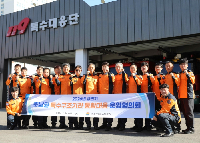 [뉴스노크=김인호 기자] 광주광역시 119특수대응단은 28일 대응단 작전실에서 ‘2026년 상반기 호남권 특수구조기관 통합대응 운영협의회’를 개최했다.