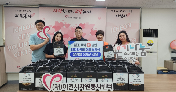 이번 나눔은 주막칡냉면 오은서 대표의 삼계탕 50세트 지원으로 추진됐고 북한이탈주민들의 무탈한 여름을 기원하며 이천경찰서와 율면 전영숙 씨의 도움을 받아 각 가정에 전달됐다.