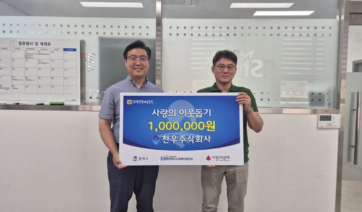 [뉴스노크=김인호 기자] 천우주식회사(대표이사 김진원)는 지난 9일 평택시사회복지협의회 회의실에서 어려운 이웃들을 위해 사용해달라며 100만 원을 전달했다.