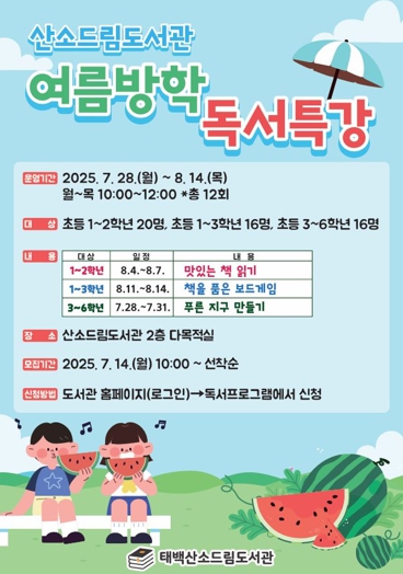 태백시 관계자는 “무더운 여름, 시원한 도서관에서 아이들이 책과 가까워지는 뜻깊은 시간이 되길 바란다”며 “앞으로도 다양한 독서 프로그램을 통해 지역 아동들의 독서 문화 활성화에 최선을 다하겠다”고 전했다.