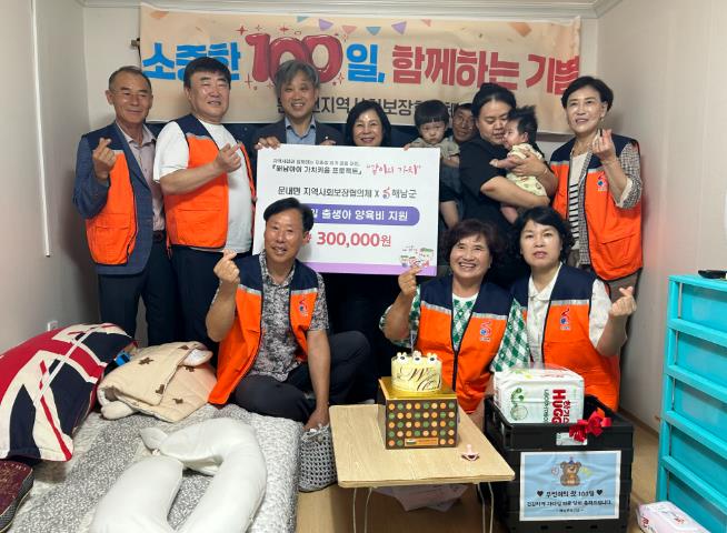 지원 대상은 문내면에 주소를 둔 생후 100일 이내의 아동으로, 2025년 7월 말 기준 출생 신고된 5명 중 4명이 이번 지원을 받을 예정이다.