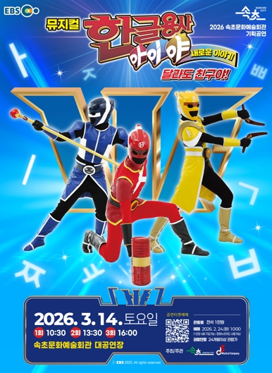 [뉴스노크=김인호 기자] 속초시는 3월 14일 10시 30분, 13시 30분, 16시 하루 3회 속초문화예술회관에서 뮤지컬‘한글용사 아이야 새로운 이야기-달라도 친구야’를 선보인다.