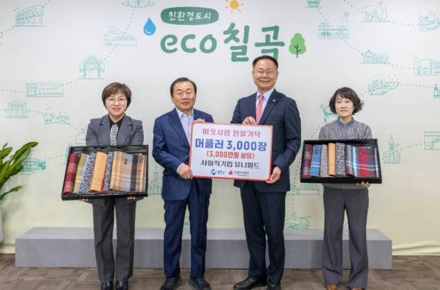 [뉴스노크=김인호 기자] 사회적 기업 유니월드(대표 최장희)에서 지난 24일 월요일 겨울을 맞아 겨울 머플러 3,000개(3,000만원 상당)을 관내 어려운 이웃을 위해 써달라며 기탁 했다.