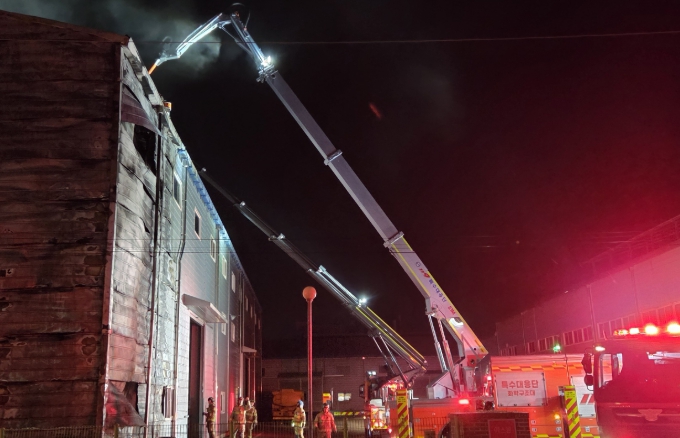 현장에 도착한 무인파괴방수차는 화점을 정밀 타격하기 위해 건물 외벽과 천장을 뚫고 공장 내부로 소화용수를 직접 분사했다. 이어 천장을 뚫어 위쪽에서 방수 통로를 확보하고 내부 연기를 외부로 배출하는 작업을 병행해 소방대원의 안전과 진압 여건을 확보했다.