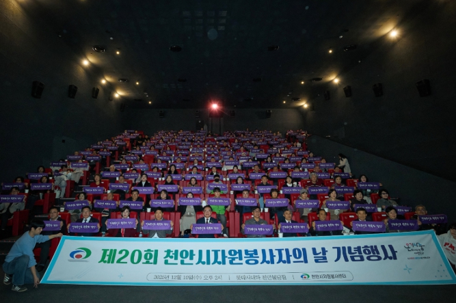 [뉴스노크=김인호 기자] 천안시자원봉사센터는 10일 롯데시네마 천안불당점에서 ‘제20회 천안시자원봉사자의 날 기념행사’를 열고, 지역사회를 위해 헌신한 자원봉사자들의 노고를 격려했다.