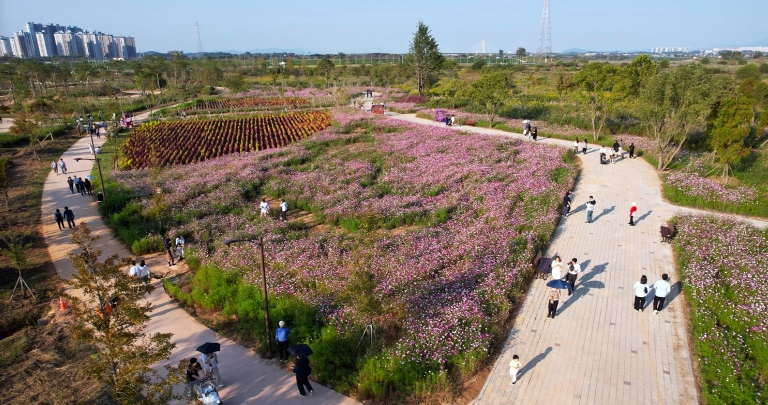 ▲ 나주시가 오는 9월 9일 영산강 정원 시민설명회를 개최한다. 사진은 영산강 정원 코스모스 & 댑싸리 꽃단지 |