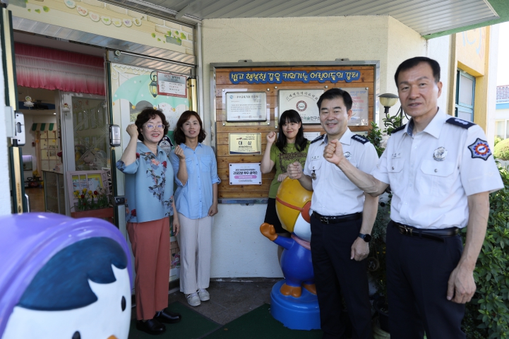 [뉴스노크=김인호 기자] 강진소방서는 7월 25일, 제20회 전남 119소방동요 경연대회에서 유치부 대상을 수상한 새하늘어린이집(원장 박선영)을 격려차 방문해 현판 제막식 및 상장 수여식을 진행했다고 밝혔다.
