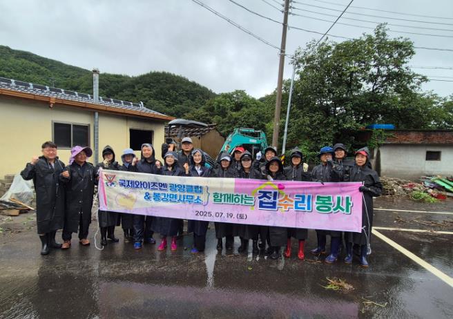 이날 폭우가 내리는 궂은 날씨에도 불구하고 클럽 회원과 봉강면사무소 직원 등 총 20명이 봉사에 참여했다.