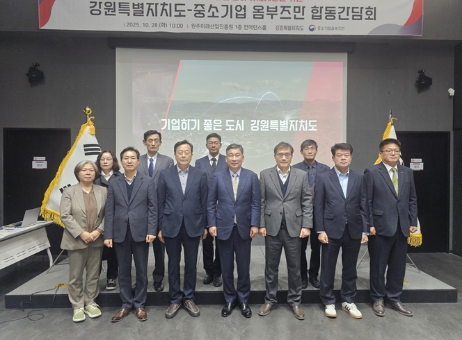 양 기관은 10월 28일 오전 10시, 원주미래산업진흥원에서 '강원특별자치도–중소기업 옴부즈만 합동간담회'를 개최했다. 이번 간담회는 지난해 10월 체결된 규제혁신 업무협약의 후속 조치로, 양 기관 간 협력 관계를 한층 강화하고 실질적인 규제개선 방안을 논의하기 위해 마련됐다.