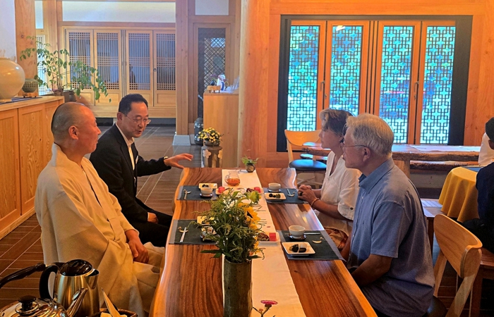 문 전 대통령 내외를 반갑게 맞이한 명현관 군수는“문재인 대통령님의 관심 덕분에 해남 솔라시도기업도시 RE100 산단을 비롯한 전남 신재생에너지 발전방안에 대한 큰 틀이 만들어지고, 지금의 에너지 대전환 전략이 구체화될 수 있었다”며 “변함없는 애정을 보여주시고 계신 문 전 대통령님게 감사드리며, 해남이 드리는 좋은 기운과 긍정의 에너지를 가득 담아 가시길 바란다”고 전했다. 명군수는 대흥사 법상 주지스님 등과 함께 문 전 대통령 내외를 맞아 저녁공양과 차담을 함께하며 휴가 일정에 동행했다.