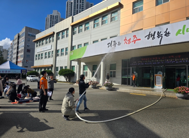 [뉴스노크=김인호 기자] 청주시 흥덕보건소는 24일 청주서부소방서 복대119안전센터와 함께 화재 예방 및 대응 능력을 강화하기 위한 합동 소방훈련을 진행했다.