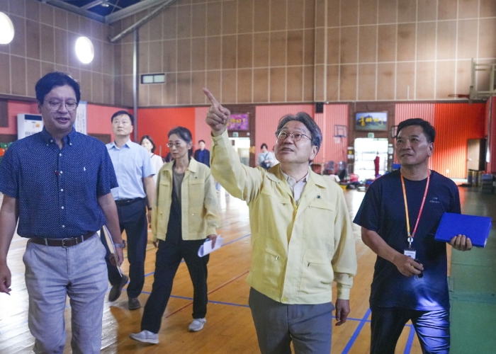 강기정 시장은 복지관동, 체육관동, 보호작업장을 차례로 둘러보며 피해 상황을 면밀히 확인했다. 이후 체육관 이용이 중단돼 불편을 겪고 있는 이용자들과 만나 애로사항과 건의사항을 경청했다.