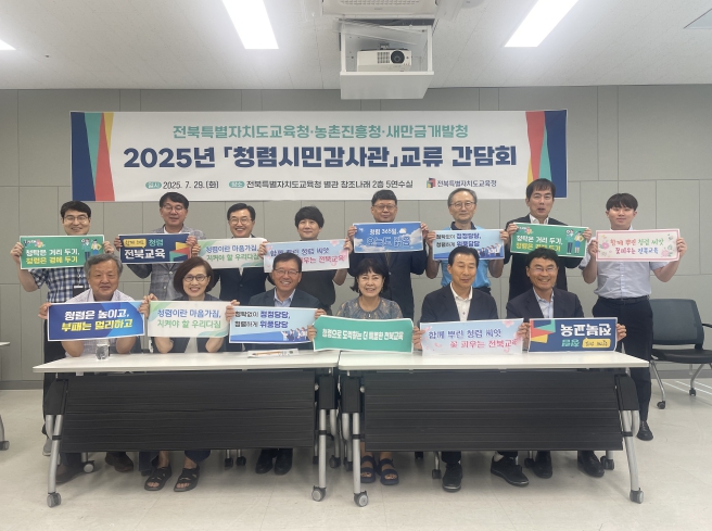 이번 간담회는 청렴시민감사관 제도 활성화와 유관기관 간 협력체계 강화를 위한 자리로, 전북교육청이 주최하고 농촌진흥청과 새만금개발청이 함께 참여했다.