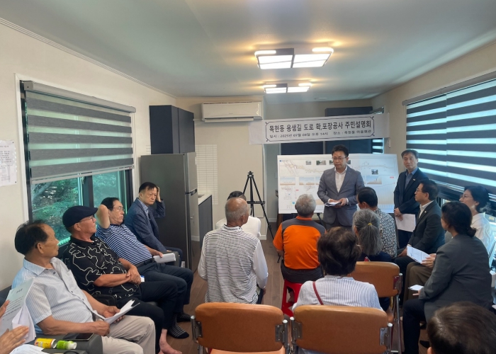 [뉴스노크=김인호 기자] 광주시는 8일 목현6통 마을회관에서 ‘목현동 용샘길 도로 확포장 공사 실시설계(안)’에 대한 주민설명회를 개최하고 사업 개요를 설명함과 동시에 주민 의견을 청취했다.