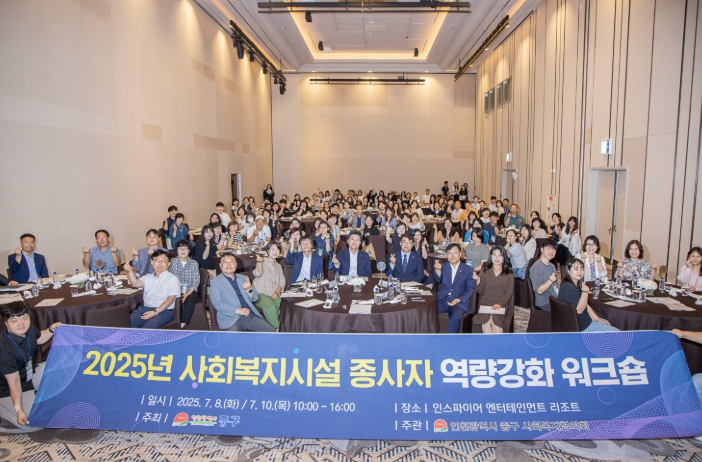 [뉴스노크=김인호 기자] 인천 중구의회는 7월 8일, 인스파이어 리조트에서 열린 ‘2025년 사회복지시설 종사자 역량강화 워크숍’에 참석해 종사자에게 격려의 뜻을 전했다.