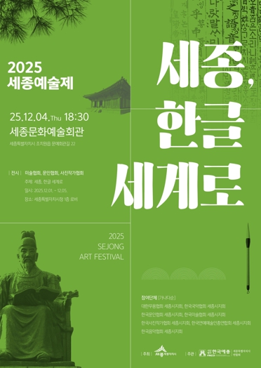 [뉴스노크=김인호 기자] 2025 세종예술제 ‘세종, 한글 세계로’가 1일부터 5일까지 세종시청과 세종문화예술회관 일원에서 열린다.