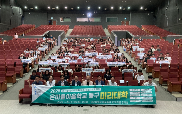 [뉴스노크=김인호 기자] 광주광역시교육청시민협치진흥원은 23일 조선대학교 해오름관 및 전공 강의실에서 동구 관내 고등학교 학생 150여 명이 참여한 가운데 ‘2025 온마을이음학교 동구 미리대학’을 운영했다.