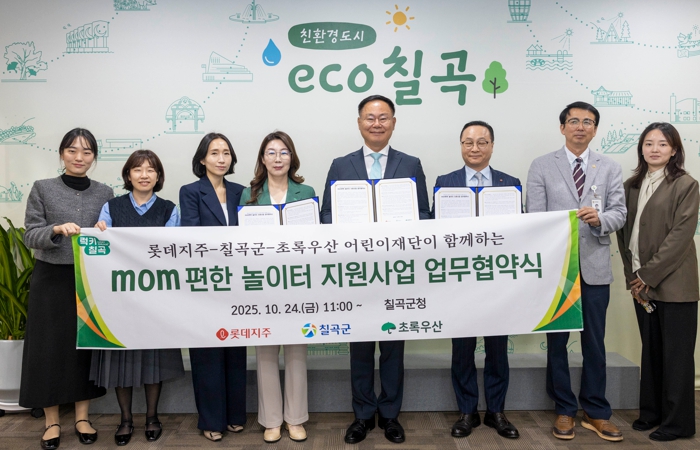 [뉴스노크=김인호 기자] 지난 24일, 칠곡군은 롯데그룹과 초록우산 어린이재단이 함께하는 ‘mom 편한 놀이터 조성을 위한 업무협약을 체결했다.