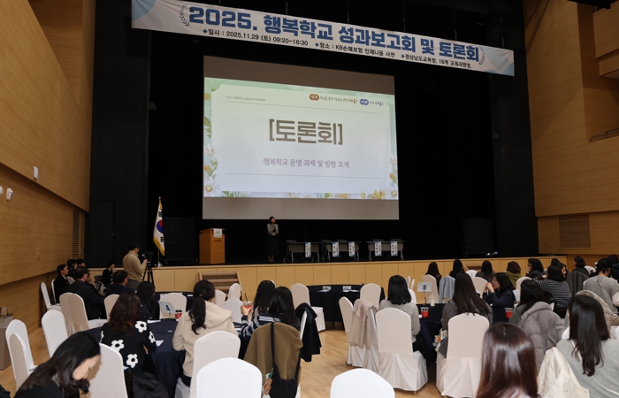 [뉴스노크=김인호 기자] 경상남도교육청은 29일 KB손해보험 인재니움 사천에서 도내 행복(나눔·맞이)학교 담당자 및 교육지원청 관계자 300명이 참석한 가운데 ‘2025 행복학교* 성과보고회 및 토론회’를 개최했다.