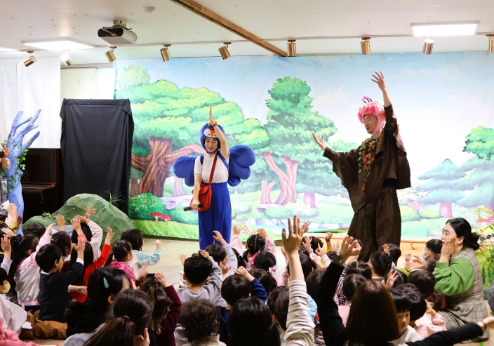 프로그램을 통해 선보인 ‘푸른, 프렌즈’는 동화 ‘아낌없이 주는 나무’를 재구성해 나무와 친구의 이야기를 따뜻하게 풀어낸 체험극이다. 어린이들은 극 중 장면에 직접 참여하며 다양한 놀이 요소를 통해 상황을 체험하는 방식으로 공연을 즐겼고, 이로 인해 몰입도가 높아져 큰 호응을 얻었다.