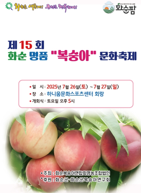 [뉴스노크=김인호 기자] 화순군이 화순복숭아연합회영농조합법인 주관으로 26일부터 27일까지 2일간 하니움문화스포츠센터에서 제15회 화순 명품 복숭아 축제를 개최한다.