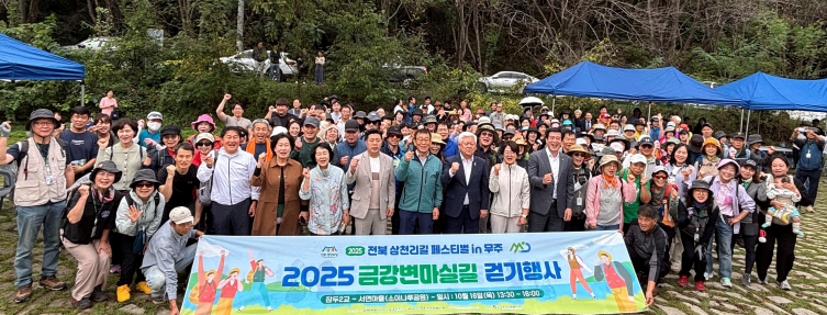 [뉴스노크=김인호 기자] 전북특별자치도와 무주군이 공동 주최한 ‘2025 전북 삼천리길 페스티벌 in 무주 – 아름다운 금강변 마실길 걷기’ 행사가 16일 무주군 부남면 금강변 일원에서 200여 명이 참여한 가운데 성황리에 열렸다.