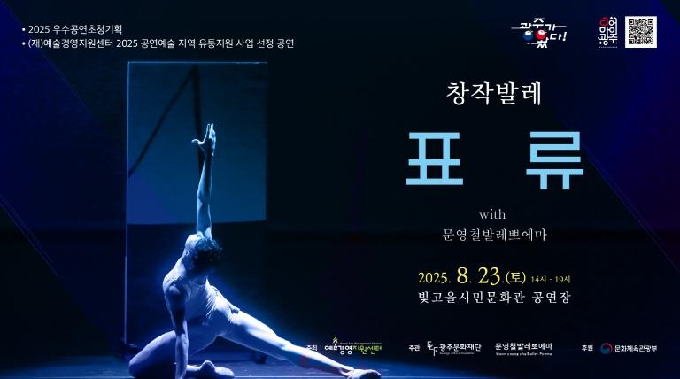 한편, 우수공연초청기획은 (재)예술경영지원센터의 ‘2025 공연예술 지역 유통지원 사업선정 공연’으로, 광주문화재단은 올해 3개 작품(총 4회 공연)이 선정됐다. 이번 문영철발레뽀에마의 창작발레 ‘표류’ 공연을 시작으로 ▲9월 6일 극단 코너스톤의 연극 ‘맹’ ▲11월 15일 생황엔의 전통 ‘오굿×Resurrection’ 등 고품격 작품들을 지속적으로 선보여 시민의 문화향유권 확대에 기여할 것으로 기대된다.