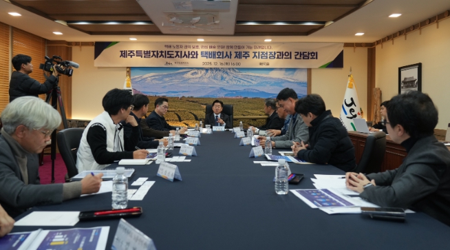 제주도는 16일 오후 도청 백록홀에서 롯데글로벌로지스, CJ대한통운, 한진택배, 로젠택배, 쿠팡CLS, 제주우편집중국 등 6개 택배회사 지점장 간담회를 열어 현장 노동 여건과 안전관리 실태를 파악하고 개선 방안을 모색했다.