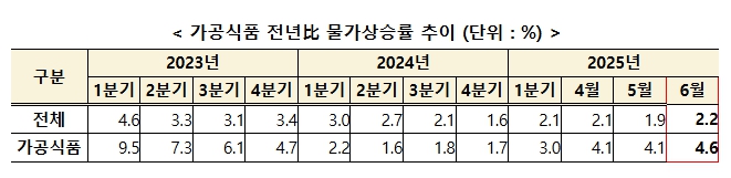 ▲ 가공식품 물가 동향 |