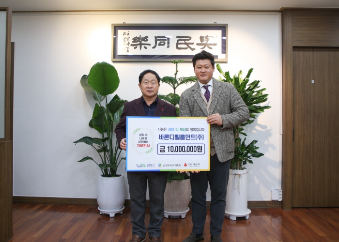 [뉴스노크=김인호 기자] 남양주시는 5일 바른디벨롭먼트 주식회사가 지역 내 취약계층 지원을 위해 후원금 1천만 원을 남양주시복지재단에 기탁했다고 밝혔다.