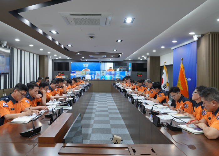 [뉴스노크=김인호 기자] 전남소방본부가 17일 14시 지휘작전실에서 22개 시ㆍ군 소방서장들과 호우대비 추진대책을 위한 지휘관 영상회의를 개최했다.