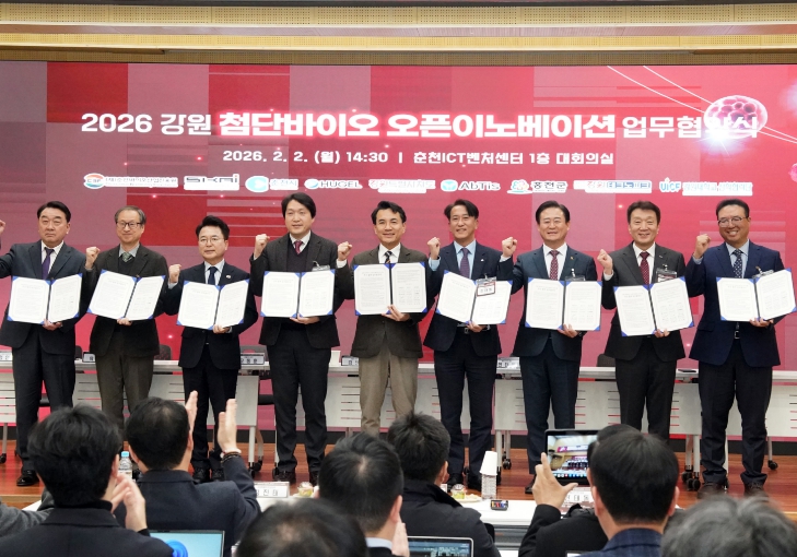 [뉴스노크=김인호 기자] 홍천군은 2월 2일, 강원특별자치도, 춘천시와 함께 춘천 ICT벤처 센터에서 「강원 첨단 바이오 오픈 이노베이션 프로그램」 업무협약식과 사업설명회를 개최하고, 올해부터 사업을 본격 확대 추진한다고 밝혔다.
