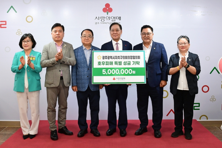 남호현 의장을 비롯한 광주 5개 자치구의회 의장들로 구성된 광주광역시자치구의회의장협의회는 24일, 광주사회복지공동모금회를 방문해 집중호우 피해복구를 위한 성금 500만원을 기탁했다.
