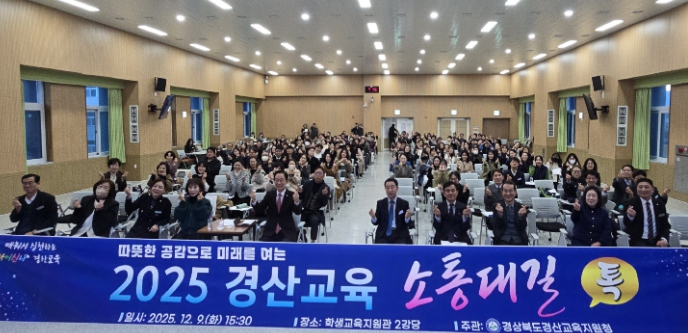 [뉴스노크=김인호 기자] 경상북도경산교육지원청은 12월 9일 경산교육지원청 학생교육지원관 2강당에서 경산시장 및 도의회 의원, 관내 유․초․중․고등학교 교(원)장, 학교운영위원장, 학부모회장, 녹색어머니회, 학생상담자원봉사자, 주민감사관 및 공약이행단 대표, 교육계 원로 등 경산 교육가족 220여 명을 초청하여 ‘교육감과 함께하는 2025 경산교육 소통대길 톡’을 개최했다.