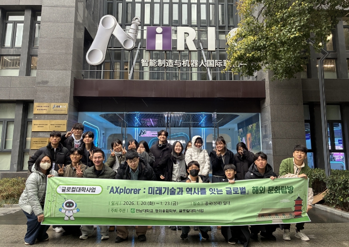 [뉴스노크=김인호 기자] 전남대학교 창의융합학부(학부장 이인혜)는 ‘글로컬대학사업’의 일환으로 지난 1월 20일부터 23일까지 3박 4일간, 중국 상해와 항주 일대에서 무전공 학생들을 위한 글로벌 진로 탐방 프로그램 'AXplorer: 미래기술과 역사를 잇는 글로벌 탐방'을 성황리에 마쳤다.