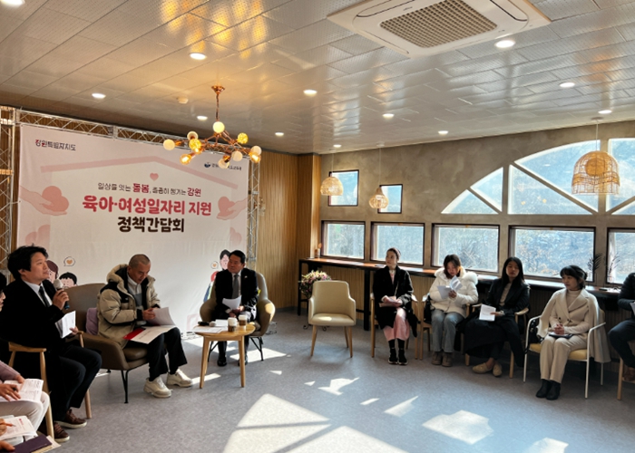 [뉴스노크=김인호 기자] 강원특별자치도교육청은 2월 12일 강원특별자치도교육청유아교육원에서 육아 중인 부모와 경력단절여성 등 20여 명이 참석한 가운데, 강원특별자치도와 함께하는 ‘육아지원·여성일자리 정책간담회’를 개최했다.