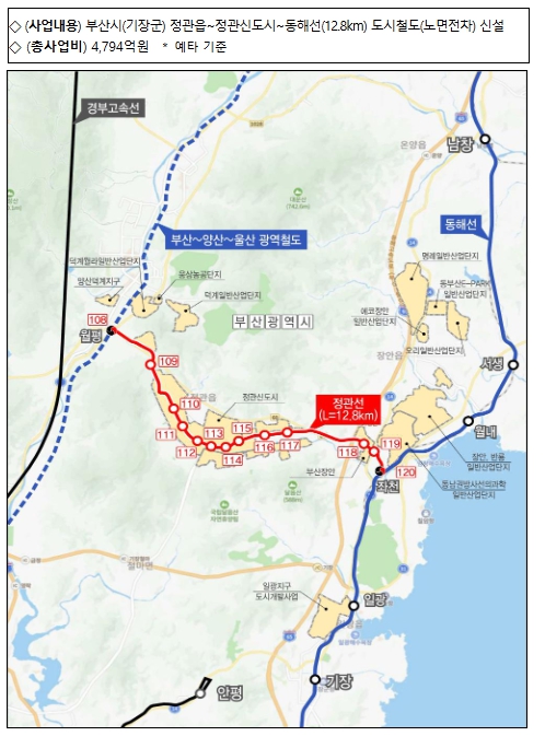 | ▲ 부산 도시철도 정관선 사업개요 및 위치도 |