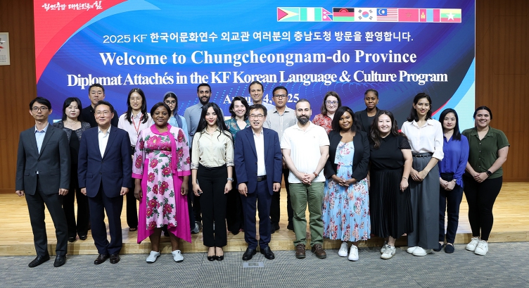 [뉴스노크=김인호 기자] 충남도는 4일 ‘한국국제교류재단(KF) 한국언어문화연수’ 사업의 일환으로 도청을 방문한 17개국 외교관들에게 충남을 알리는 시간을 가졌다.
