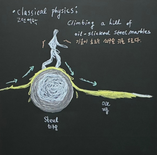 | ▲ 류혜두, 〈양자 터널링〉, 칠판 판넬에 수성분필, 30x30cm, 2025 |