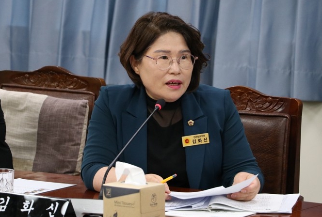 ▲ 김화신 의원 2025년도 인재평생교육진흥원 소관 업무보고에 대해 질문하고 있다. |
