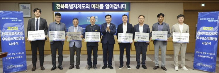 [뉴스노크=김인호 기자] 전북특별자치도가 지역경제와 산업 발전에 기여한 중소기업인을 발굴·격려하기 위해 13일 ‘제23회 전북특별자치도 우수중소기업인상 시상식’을 개최했다.