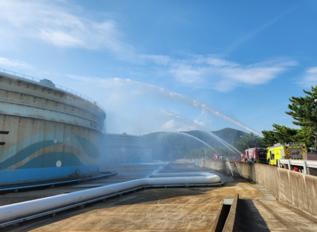 [뉴스노크=김인호 기자] 경상남도 소방본부(본부장 이동원)는 28일 거제시 일운면 소재 한국석유공사 석유비축기지에서 지진 발생에 따른 원유 누출과 화재 대응을 위한 통합 대응훈련을 성공적으로 실시했다고 밝혔다.