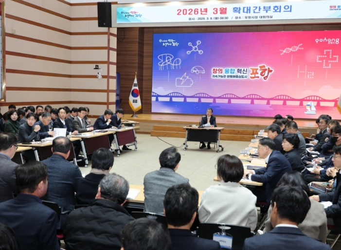 [뉴스노크=김인호 기자] 포항시는 9일 장상길 포항시장 권한대행 주재로 3월 확대간부회의를 개최하며 주요 현안의 흔들림 없는 업무 추진에 총력을 다하기로 했다.